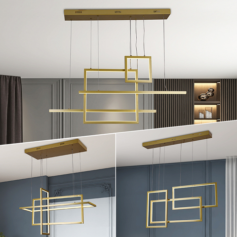 モダンハンギングペンダントライトコンテンポラリーアクリルブラック新しいデザインスクエアランプダイニングルームリビングルームLEDシャンデリア